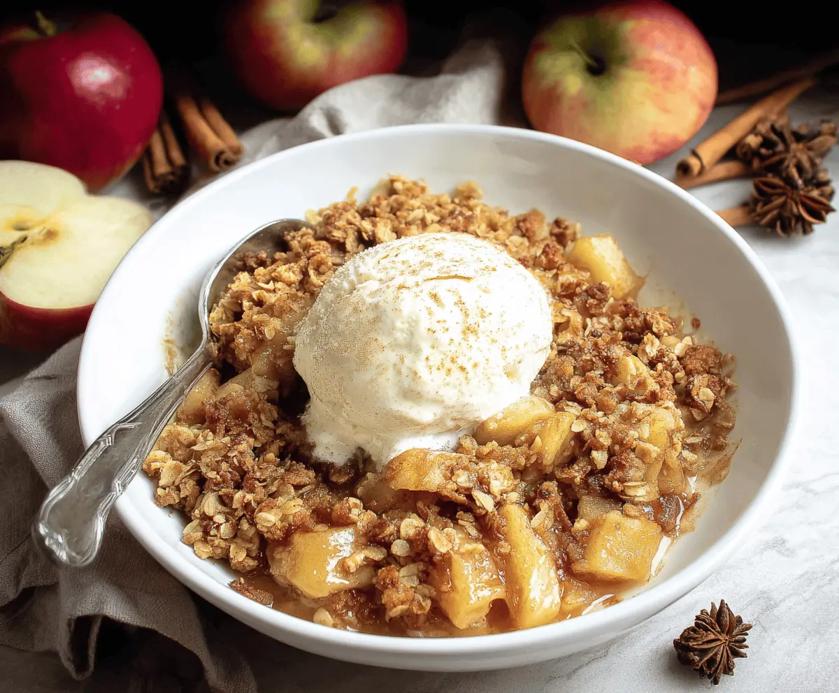 I love serving it warm with a scoop of vanilla ice cream on top. The combination of warm apples and cold ice cream is just too good, right? 🍏🍦