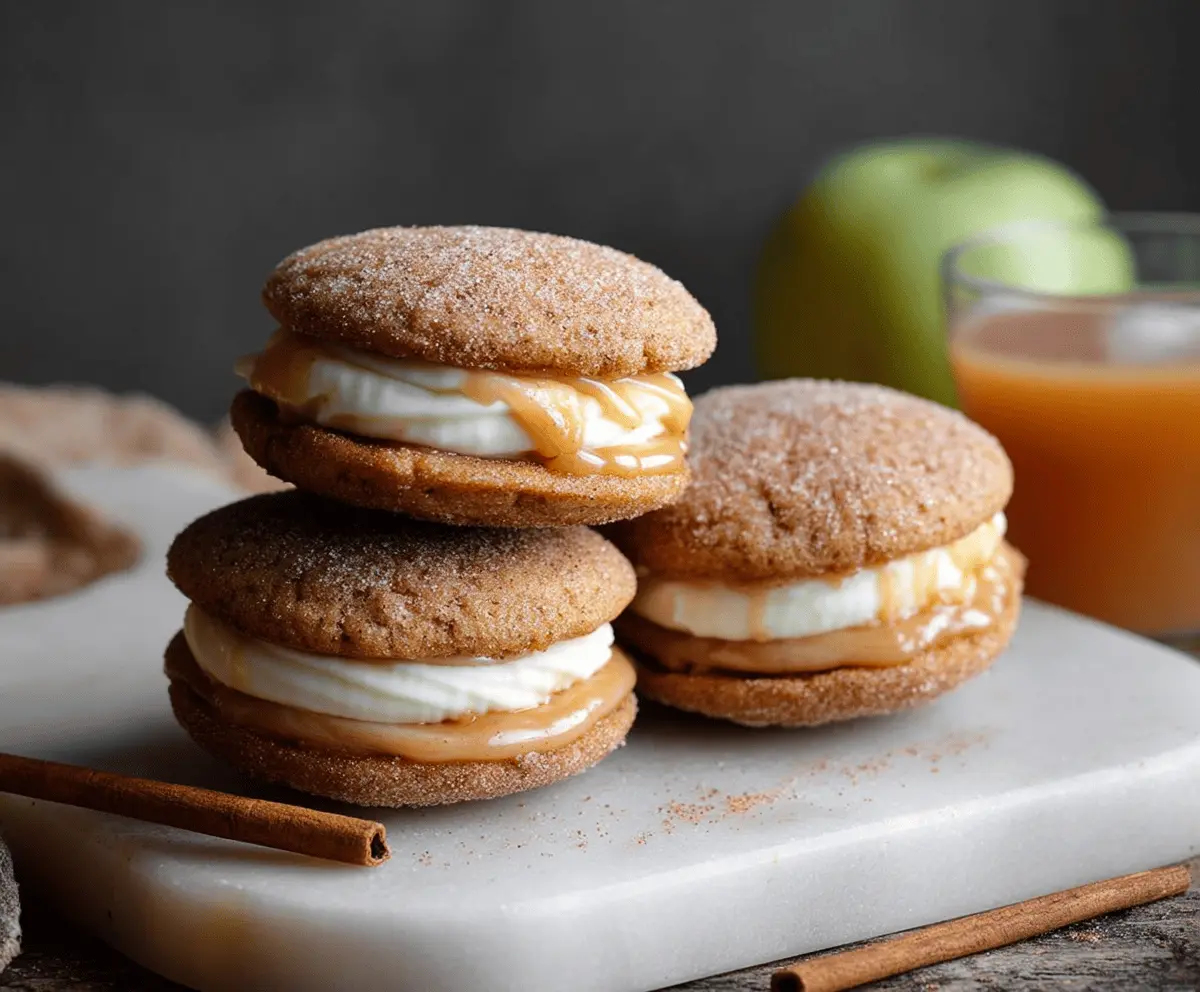These whoopie pies are a delightful fusion of tender spices, creamy filling, and the comforting taste of apple cider, complete with a light cinnamon sugar exterior. They’re ideal for fall gatherings or a sweet treat on a cozy afternoon!