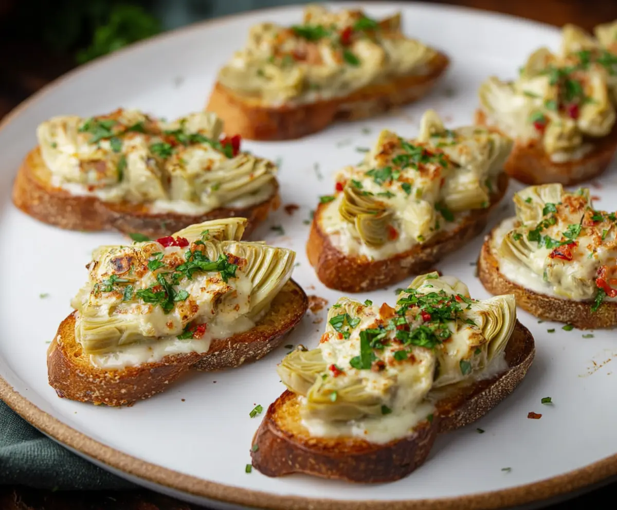 Yes, you can prep the artichoke mixture a few hours ahead of time. Just store it in the fridge in an airtight container. Bring it to room temperature before assembling on the toasted bread for the best results.