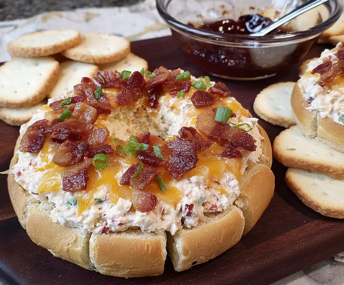 This Bacon Cheese Ring Party Dip is a crowd-pleaser! Imagine creamy cheese mixed with crispy bacon, all packed into a fun ring shape. Perfect for dipping and sharing!
