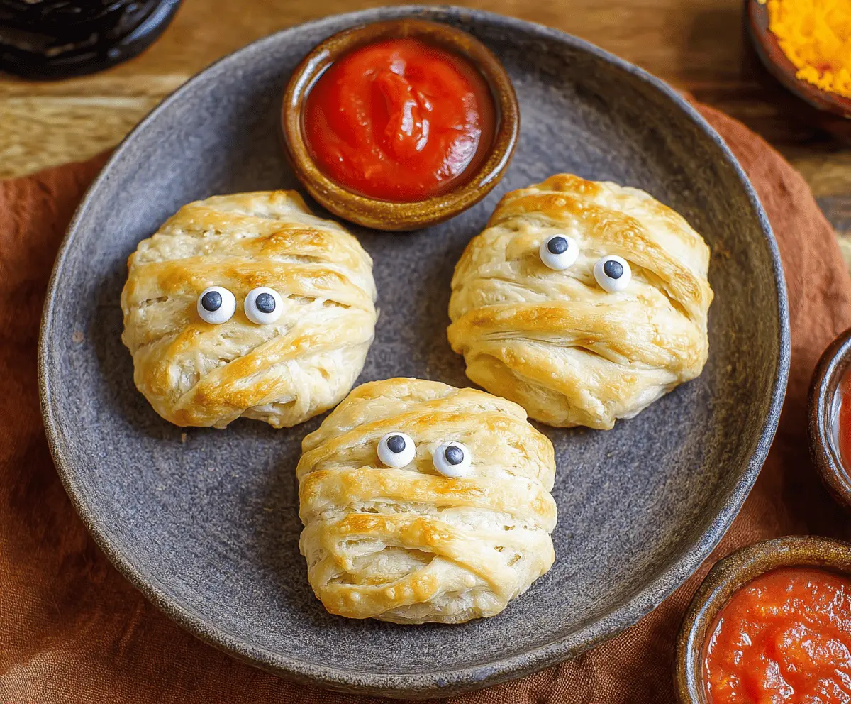 Yes! You can assemble the mummies ahead of time and store them in the fridge. Just bake them right before serving for that fresh-out-of-the-oven taste. They can be kept in the fridge for up to a day before baking!