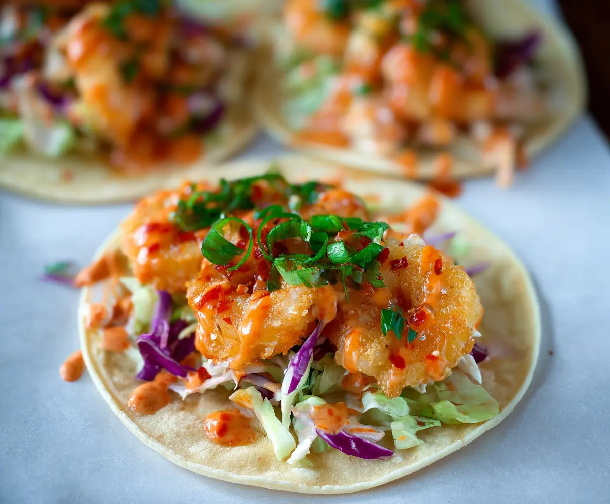 Bang Bang Shrimp Tacos are a fun and tasty dish! With crispy shrimp tossed in a sweet and spicy sauce, they’re packed with flavor. Just add fresh toppings and you’re ready to go!