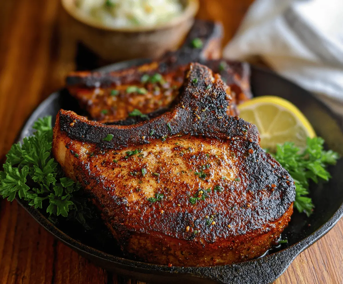 Enjoy your richly flavored, perfectly blackened pork chops! They pair wonderfully with creamy mashed potatoes or a fresh green salad. Bon appétit!