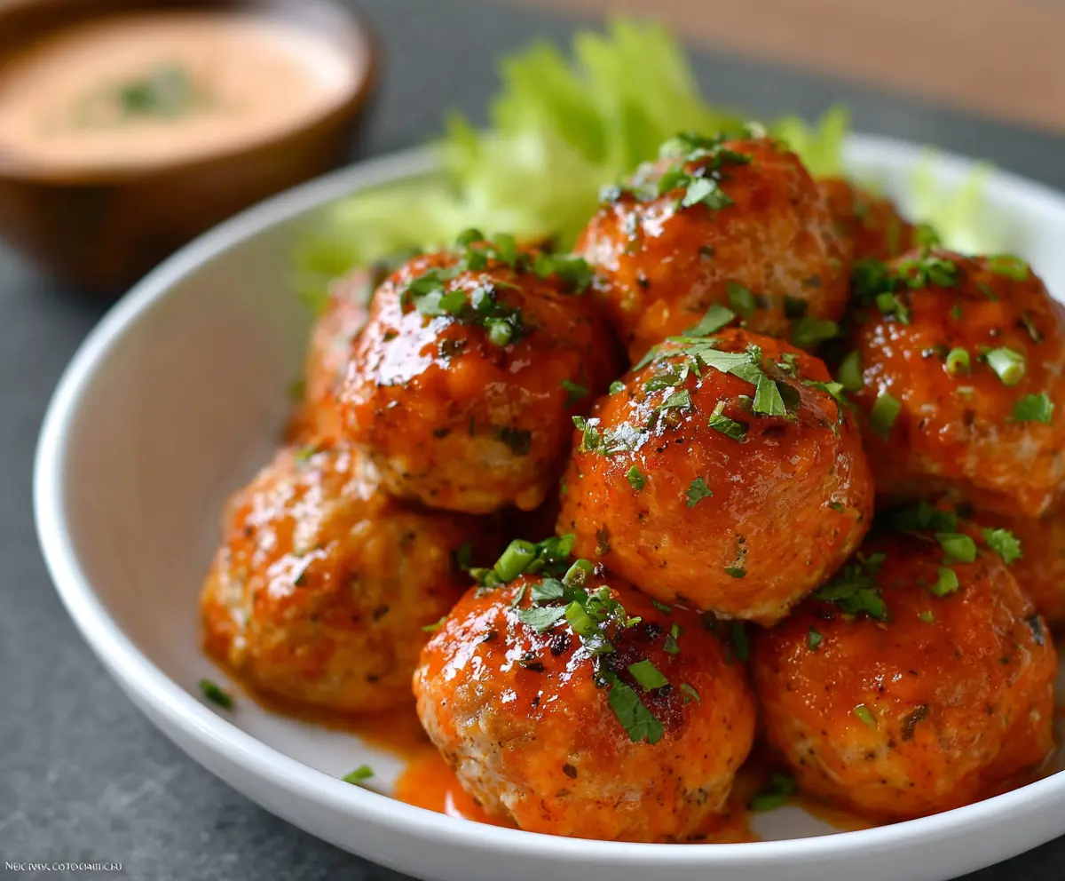 These Buffalo Chicken Meatballs are full of flavor and come with a spicy kick! Made with ground chicken and zesty hot sauce, they’re perfect as a snack or a main dish.