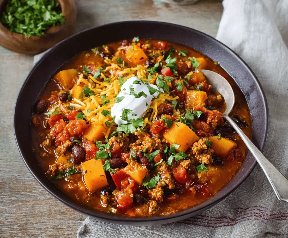 This cozy butternut squash chili is packed with warm spices and hearty goodness. The sweet squash adds a nice twist, making it both comforting and tasty!