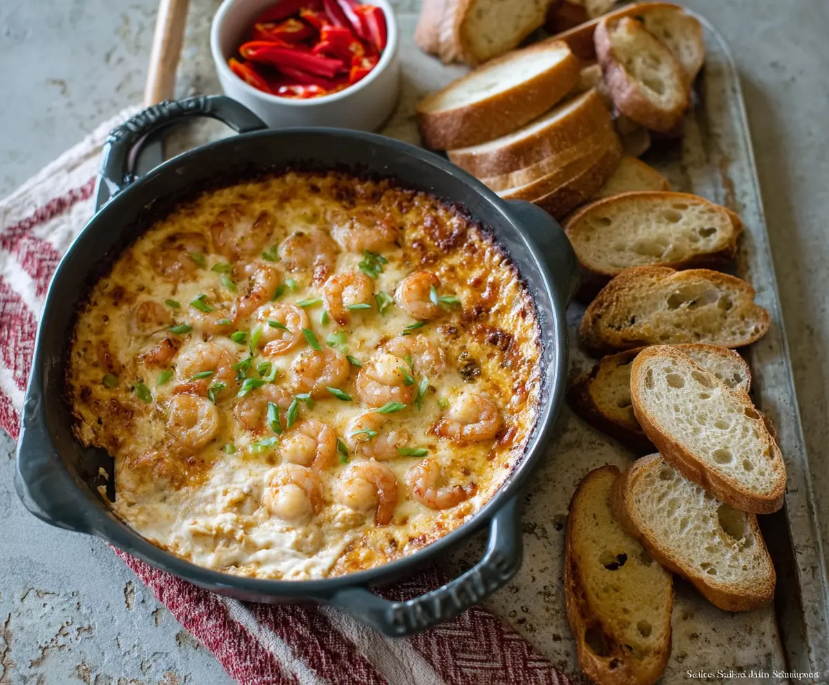 Serve the warm Cajun Shrimp Dip with slices of baguette, crackers, or crisp celery sticks. Enjoy every creamy, spicy bite!