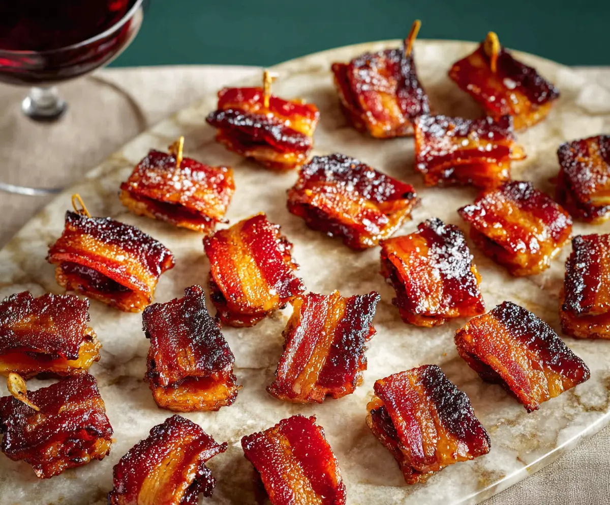Finally, arrange the candied bacon bites on a serving platter. These bites can be enjoyed warm or at room temperature, making them a versatile treat for any gathering. Enjoy the delightful combination of sweetness and savory bacon goodness!