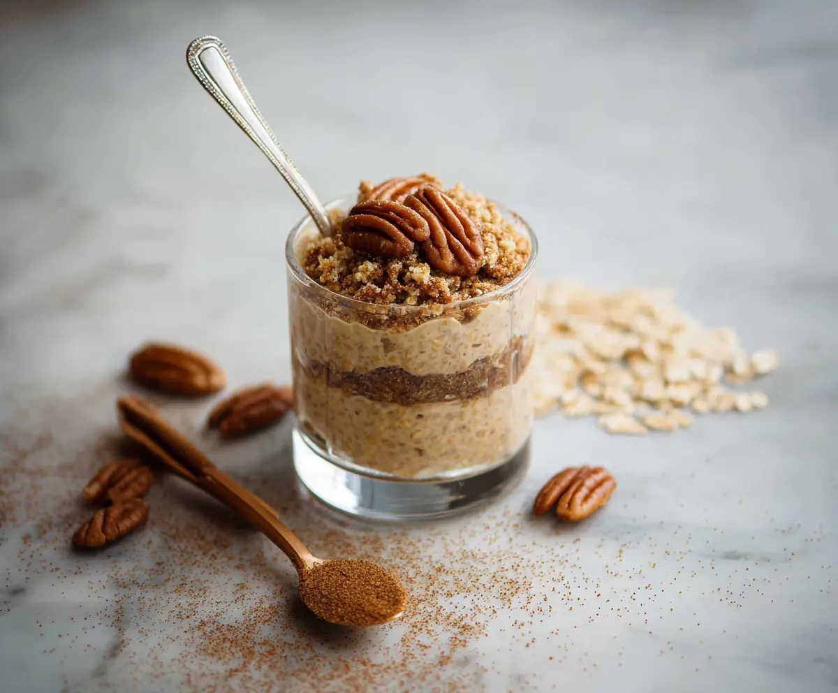 While your oats are soaking, you can prepare the streusel topping. In a small bowl, mix together the chopped pecans, brown sugar, ground cinnamon, and butter (if using) until the mixture is crumbly and well combined. This will give your oats that coffee cake-like crunch!