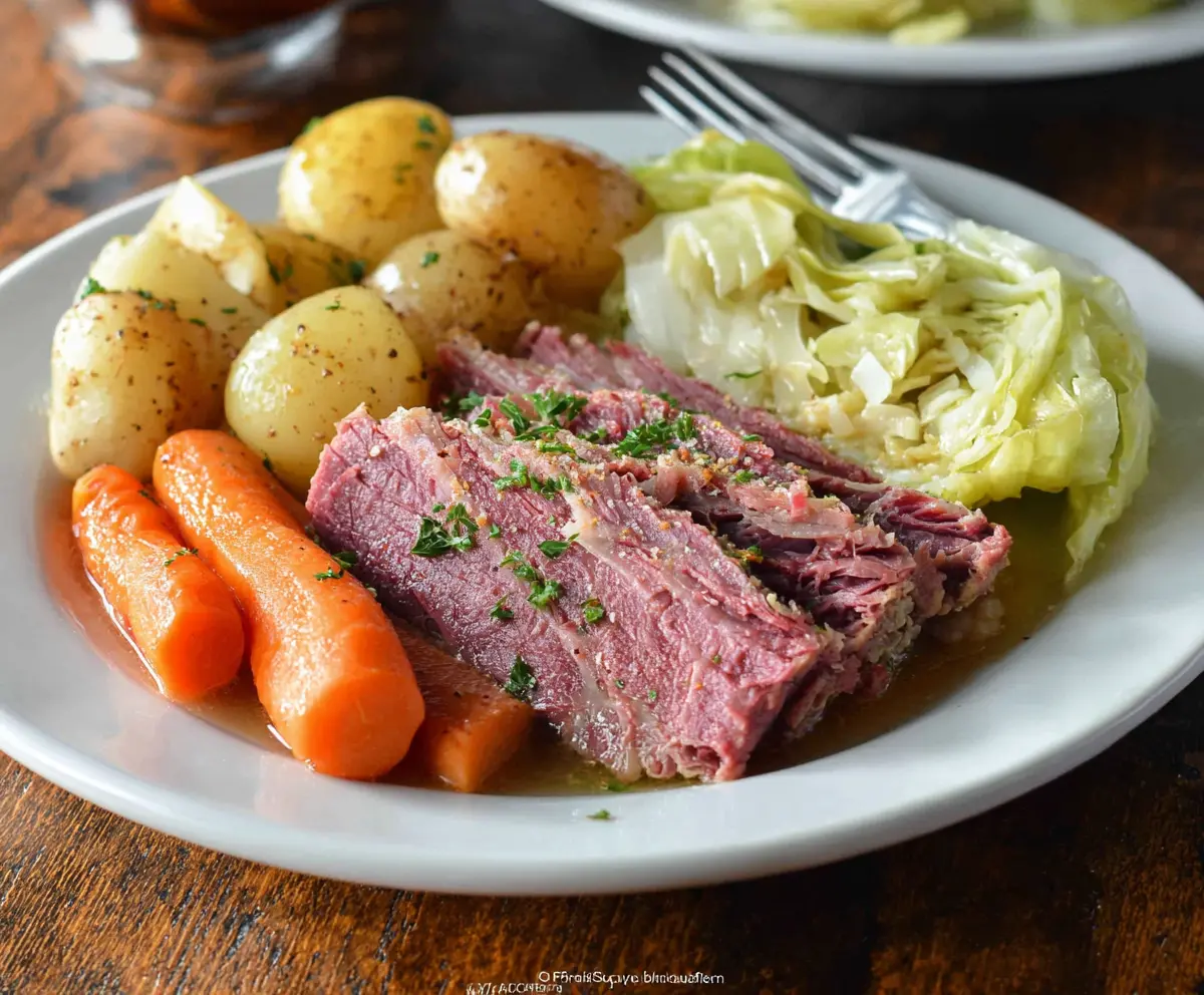Dig in and enjoy your classic Corned Beef and Cabbage—a hearty and crowd-pleasing meal!