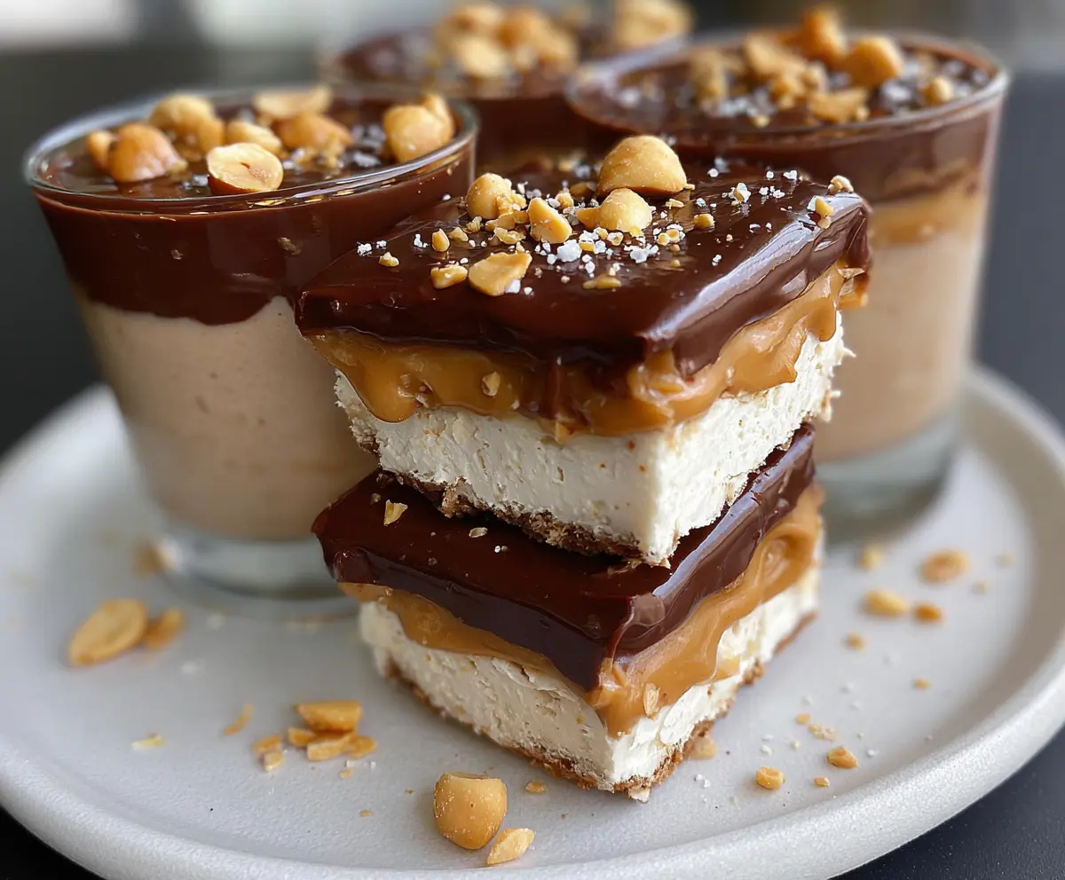In a microwave-safe bowl, melt the dark chocolate chips with coconut oil or butter. Heat in 20-second bursts, stirring in between until it’s completely smooth. Pour this melted chocolate generously over the peanut butter layer, covering it entirely.