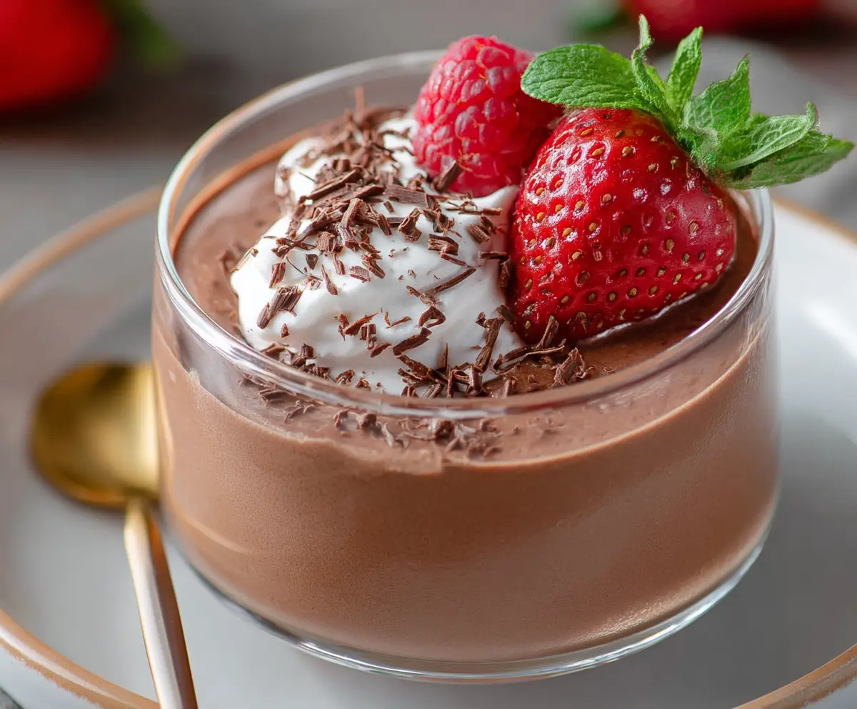 When you’re ready to serve, take the mousse out of the fridge. Top each serving with a dollop of whipped cream, a few fresh strawberries, and a sprinkle of dark chocolate shavings for that perfect finishing touch. Serve chilled and enjoy every bite!