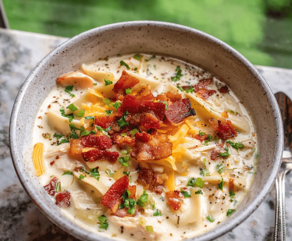 Crack Chicken Noodle Soup is a cozy bowl of goodness! It’s creamy, packed with chicken, noodles, and a touch of ranch flavor that makes it unforgettable.
