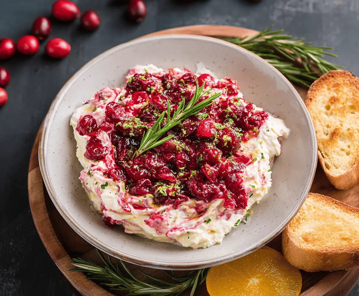 Enjoy this creamy, tangy, and slightly sweet dip that combines the sharpness of feta with vibrant cranberry and fragrant rosemary flavors!
