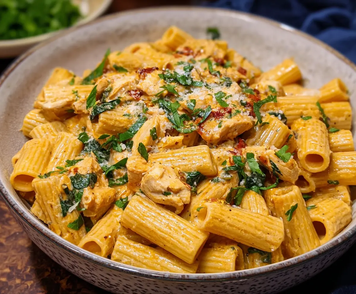 Serve your creamy Chicken Rigatoni hot, garnished with extra parsley or a sprinkle of crushed red pepper flakes for that extra kick. Dig in and enjoy every comforting bite!