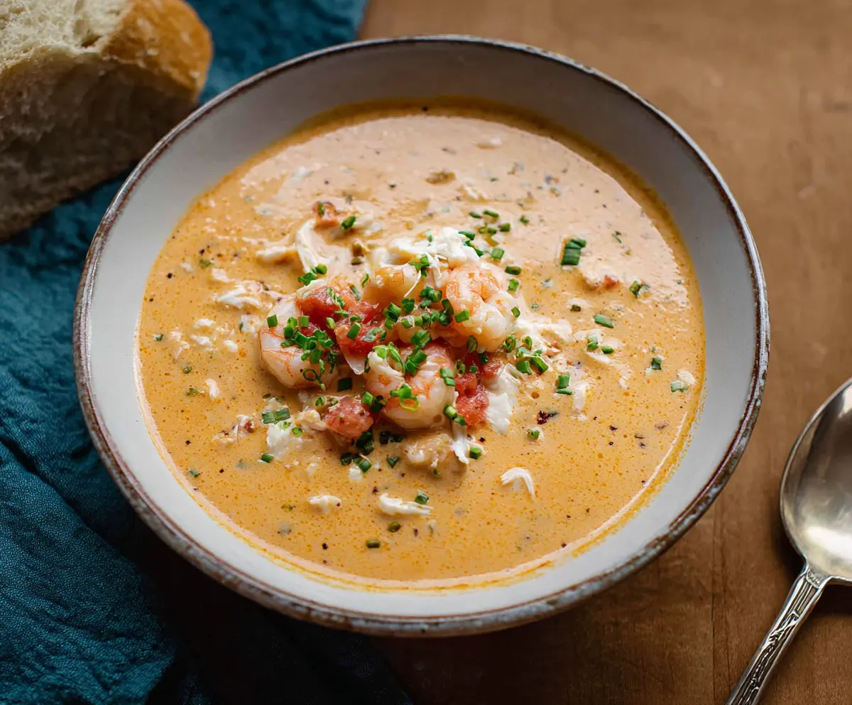Enjoy your smooth, creamy crab and shrimp seafood bisque that’s sure to warm you up and delight your taste buds!