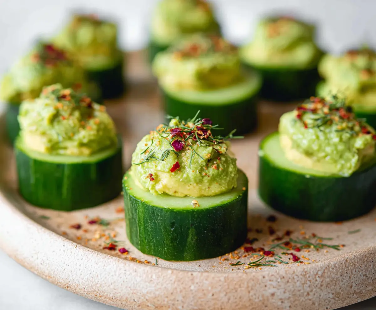 This recipe takes about 10-15 minutes to prepare. You’ll spend a few minutes washing and cutting the cucumber, then mashing and mixing the avocado filling. It’s quick and perfect for any last-minute get-together!