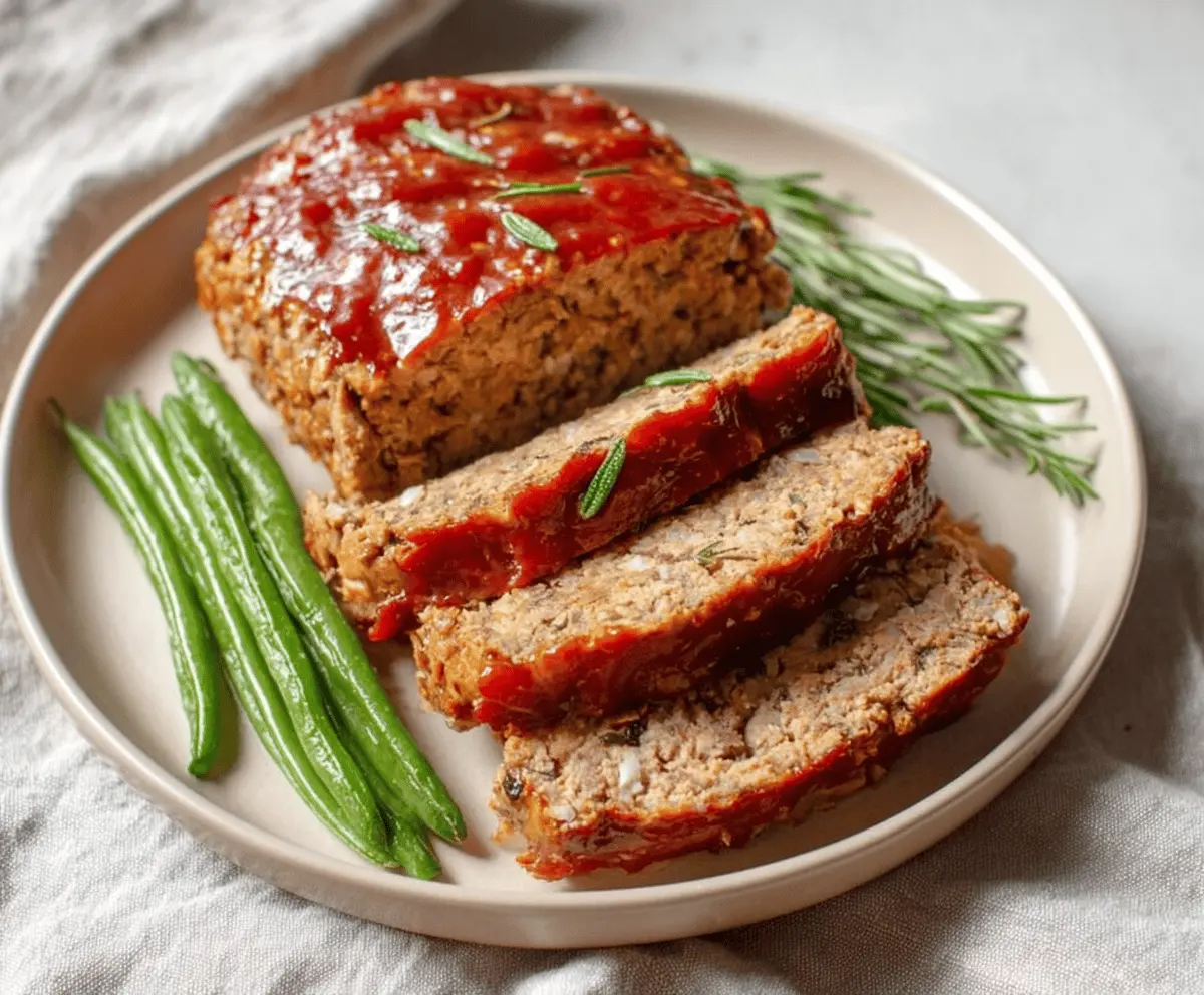 Once done, let the meatloaf rest for about 10 minutes before slicing it. This allows the juices to settle, making it juicier. Serve with your favorite sides like steamed green beans and creamy mashed sweet potatoes for a perfect meal!