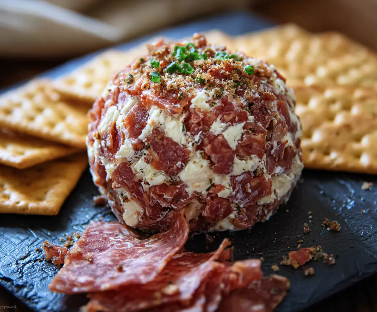 This Dried Beef Cheese Ball is a tasty party snack that everyone will love! It’s made with cream cheese, dried beef, and a mix of spices, all rolled into a perfect ball.