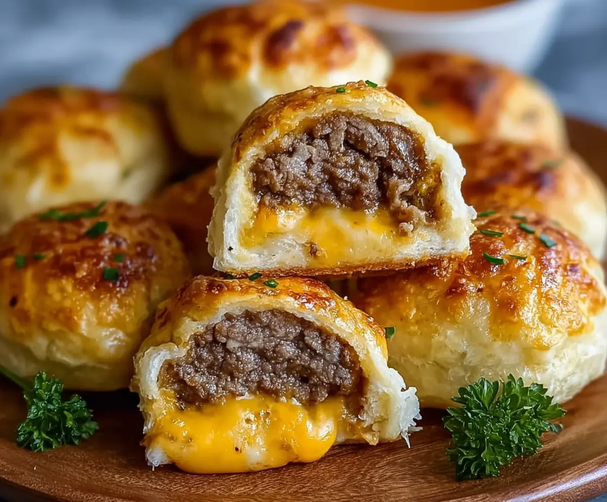 These Garlic Parmesan Cheeseburger Bombs are warm, cheesy bites filled with juicy burger goodness. Wrapped in flaky dough, they make a great snack or party treat!