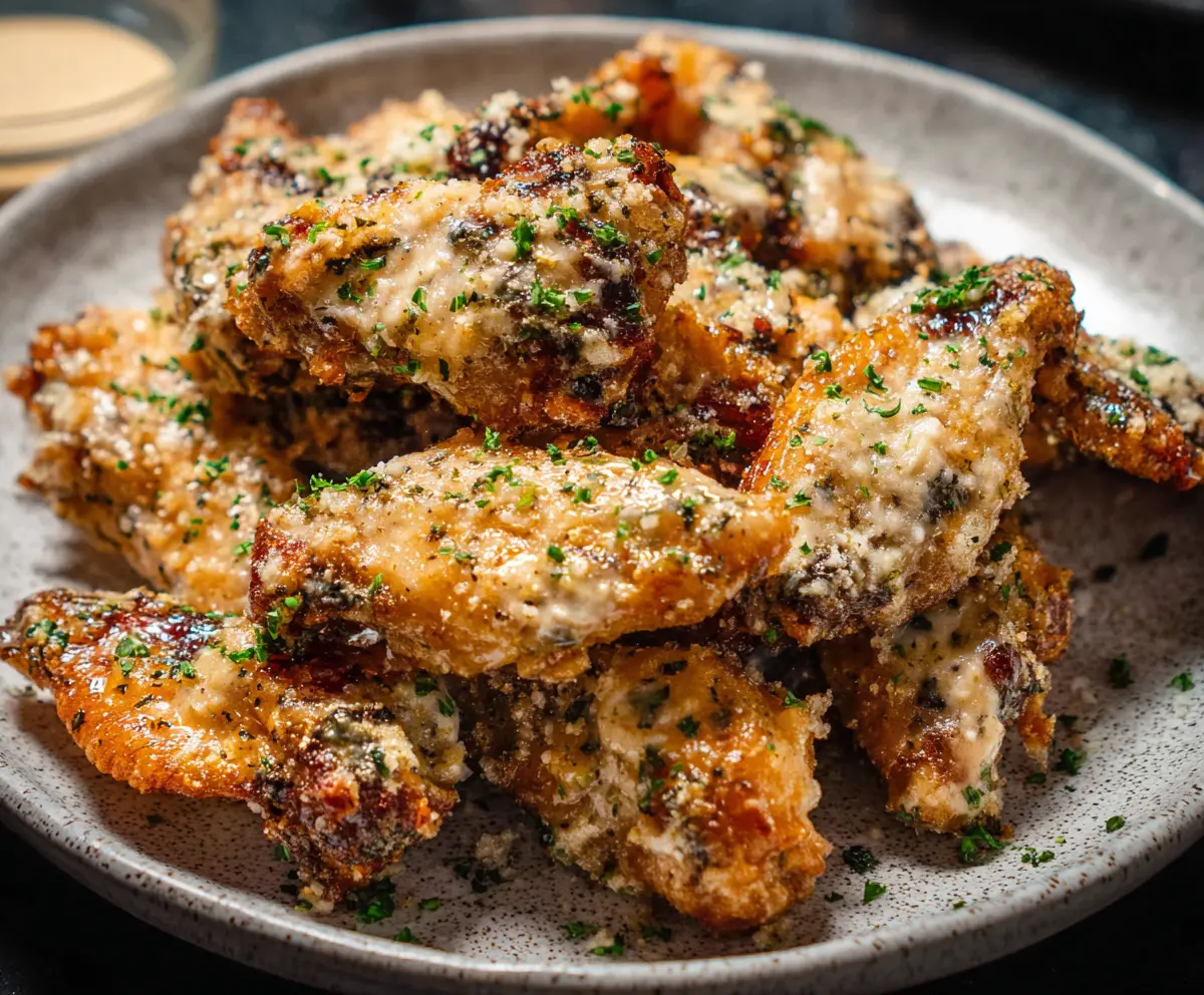 These Garlic Parmesan Wings are crispy, tasty, and full of flavor! Coated in a delicious mix of garlic and cheesy goodness, they are perfect for snacking or a game day treat.