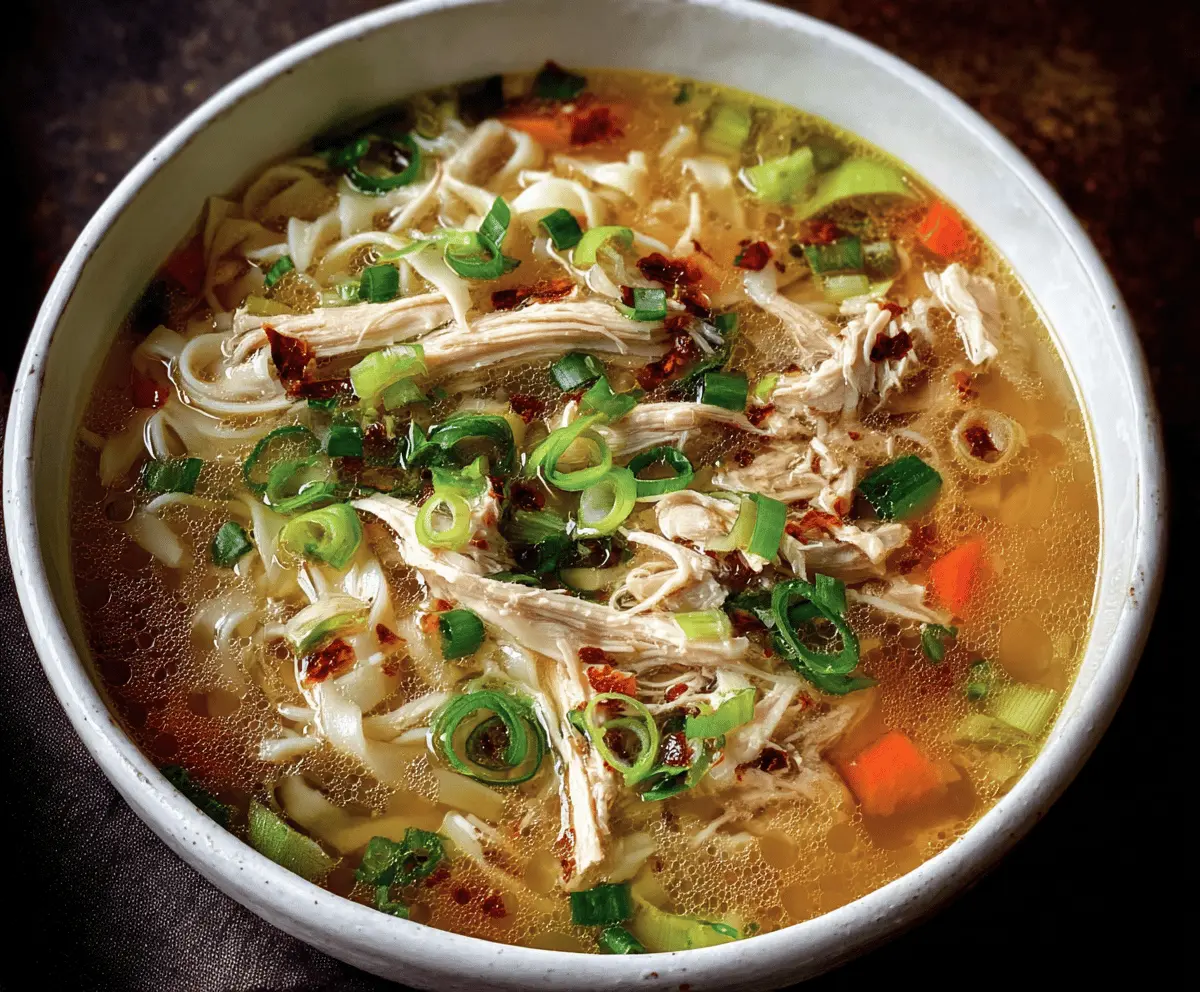 This soup is a perfect blend of a light broth infused with ginger and garlic, tender chicken, delicate noodles, and fresh veggies—truly comfort in every bowl!