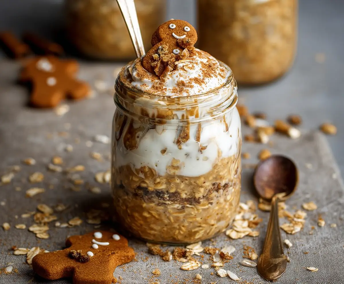 Start your day off right with these Gingerbread Overnight Oats—simple, quick, and full of holiday cheer! 🎄🥄