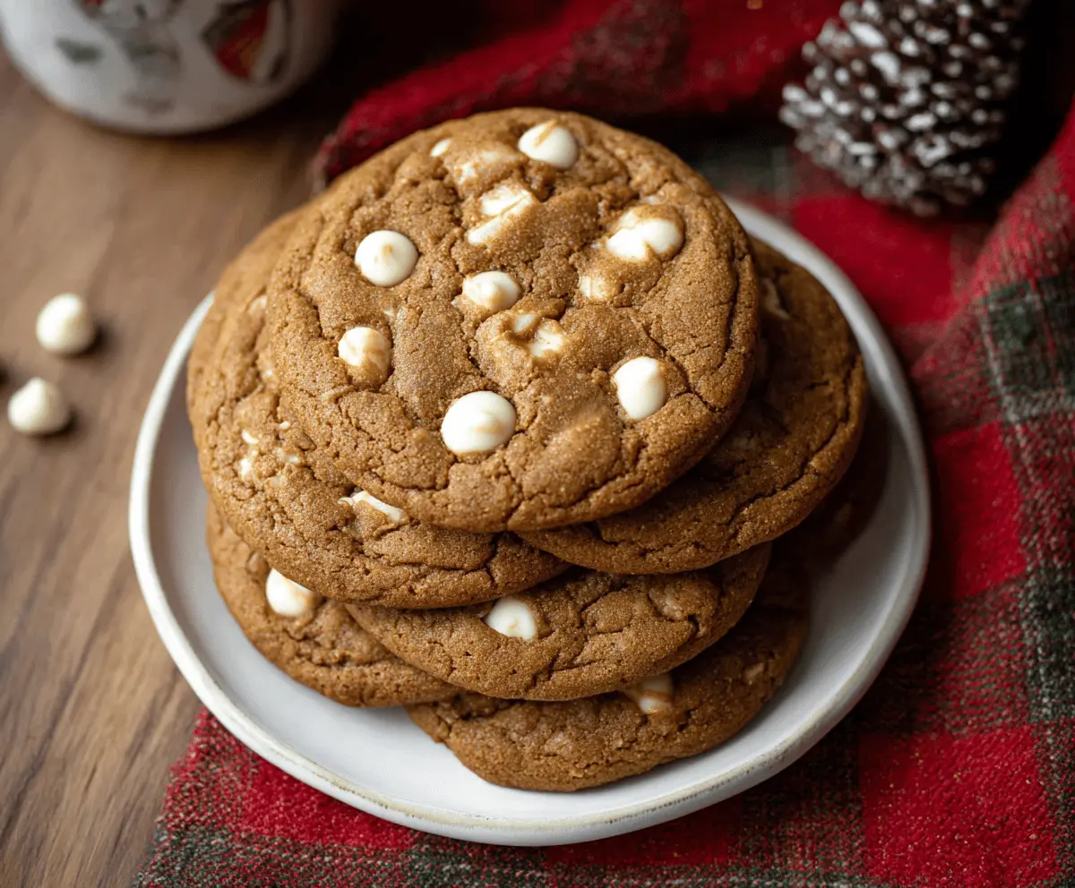 These gingerbread white chocolate chip cookies are a fun twist on the classic treat! They blend warm spices with sweet chunks of white chocolate, making every bite a cozy delight.