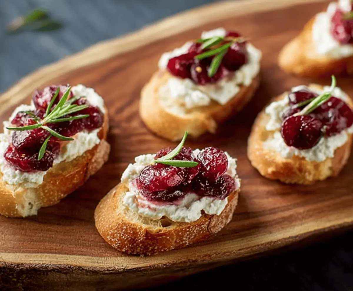 This Goat Cheese and Cranberry Crostini is a tasty treat that’s perfect for gatherings. The creamy goat cheese pairs wonderfully with the sweet and tangy cranberries on crispy bread!
