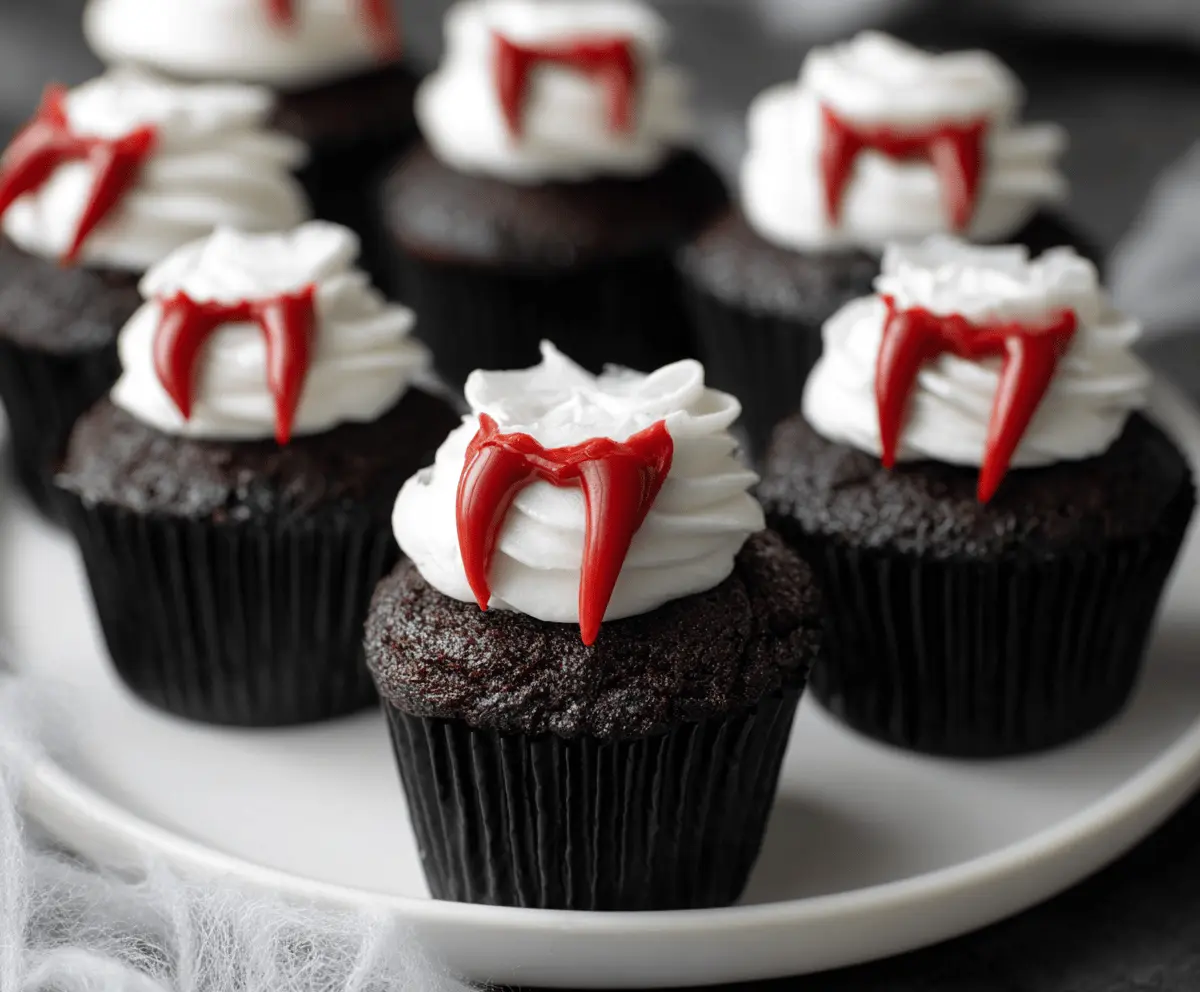 These spooky Halloween Vampire Bite Cupcakes are perfect for your Halloween party! With a chocolatey base and creamy frosting, they look messy and fun, just like a vampire’s snack!