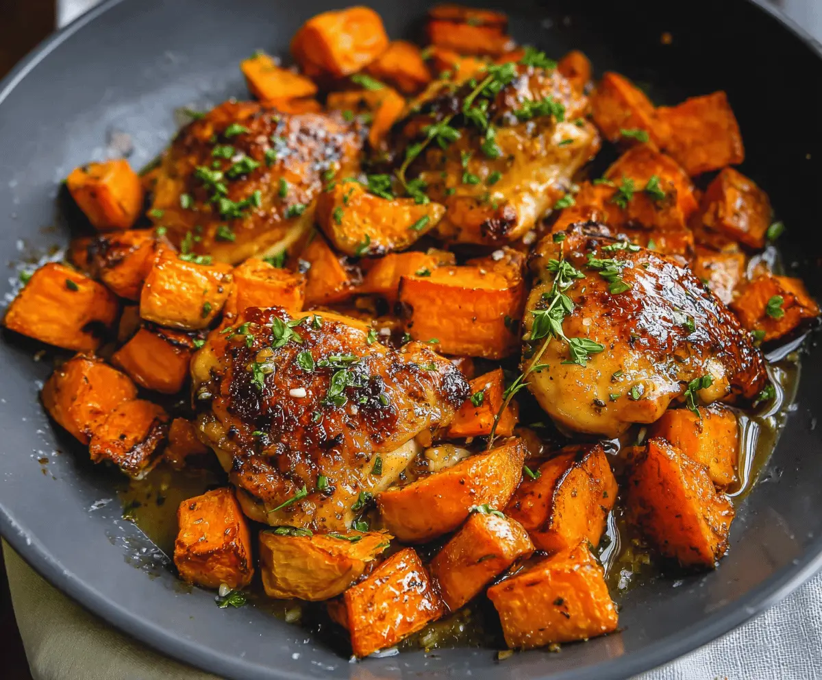 This honey garlic chicken is sweet and sticky, paired perfectly with tender sweet potatoes. It’s not just tasty; it’s a one-pan wonder that makes clean-up a breeze!