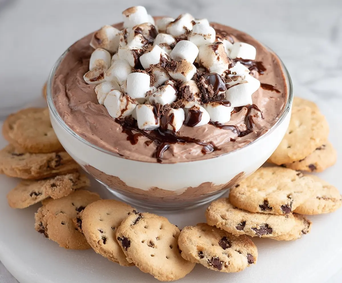Top the dip with a generous amount of mini marshmallows, and sprinkle chocolate shavings or mini chocolate chips on top. It’s all about that delightful presentation!