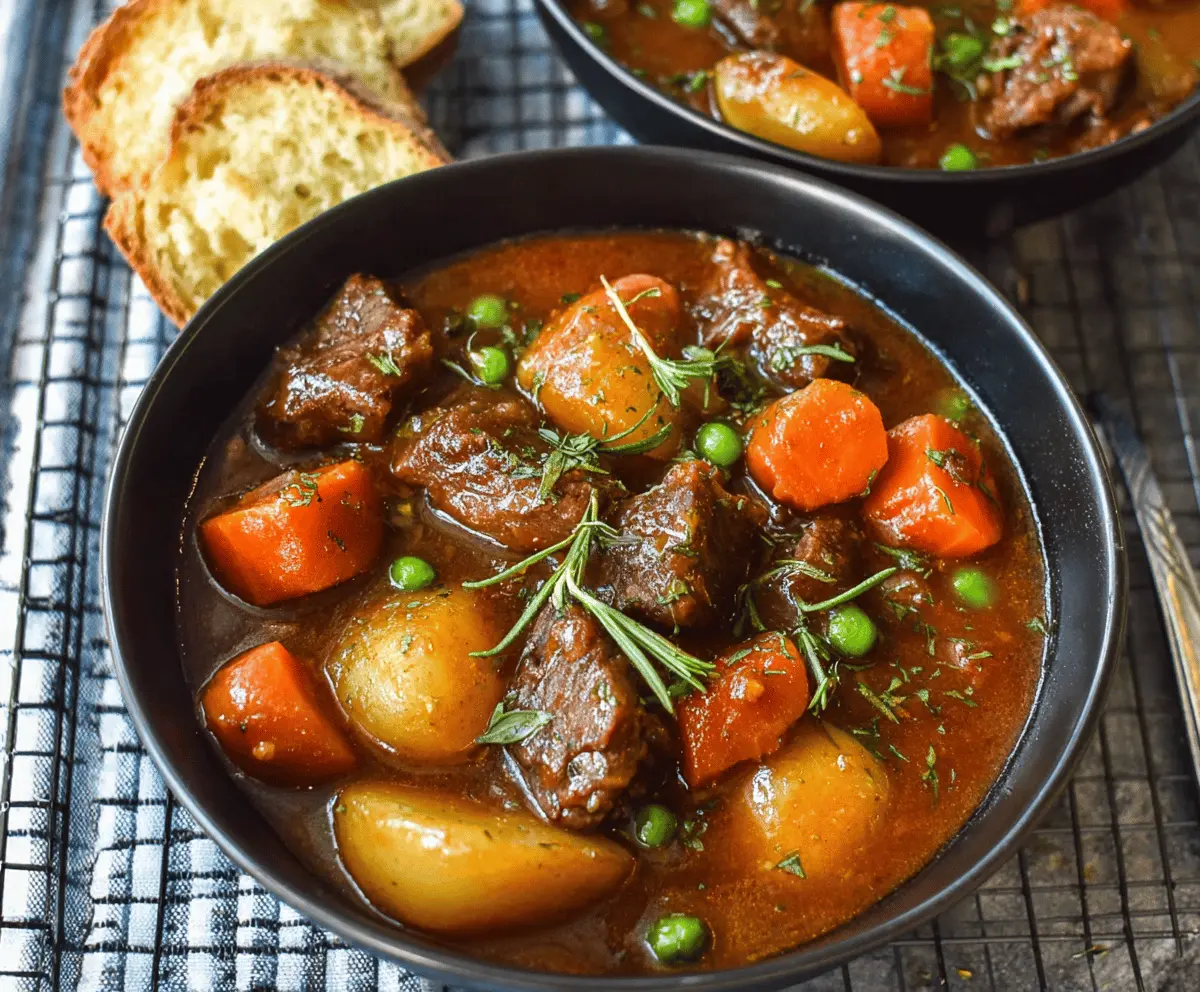 Don’t forget to remove the bay leaves! Adjust the seasoning with salt and pepper to taste. Serve your delicious beef stew hot, garnished with chopped fresh parsley, and enjoy with some crusty bread if you like!