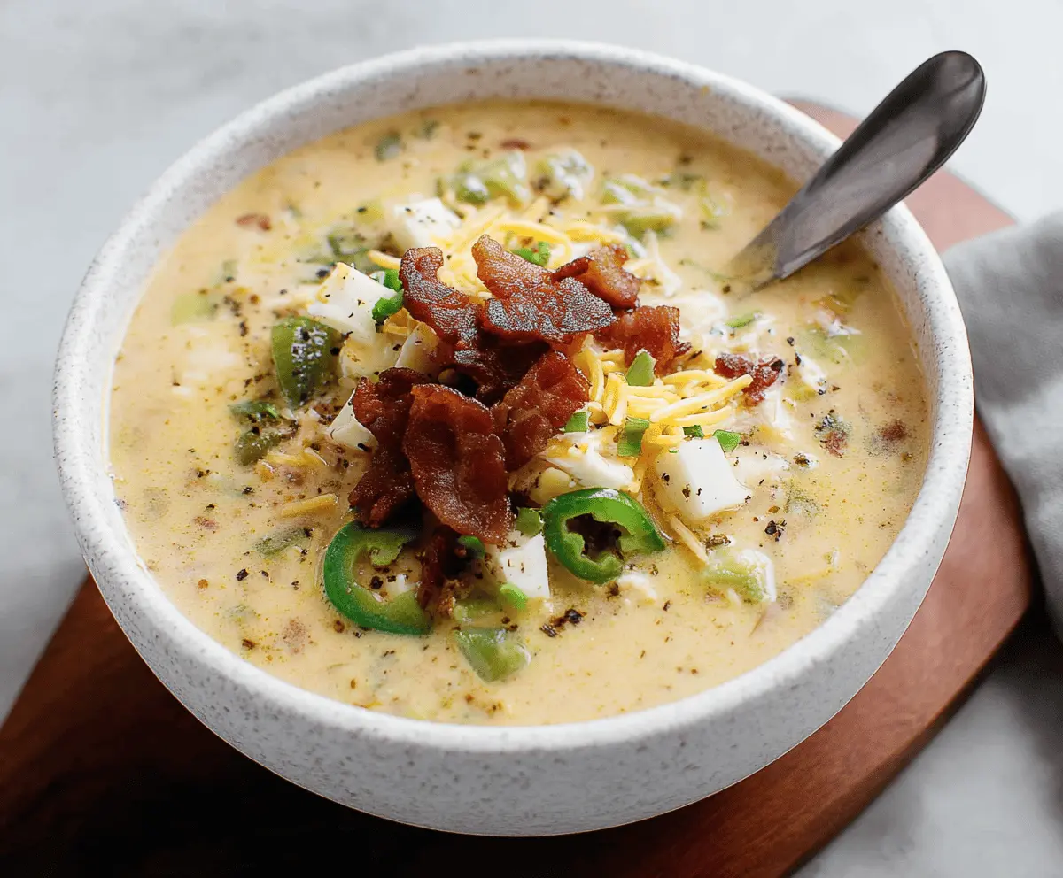 This Jalapeño Popper Chicken Soup is a warm and cozy dish that packs a spicy punch! With creamy chicken, zesty jalapeños, and cheesy goodness, it’s a perfect comfort meal.
