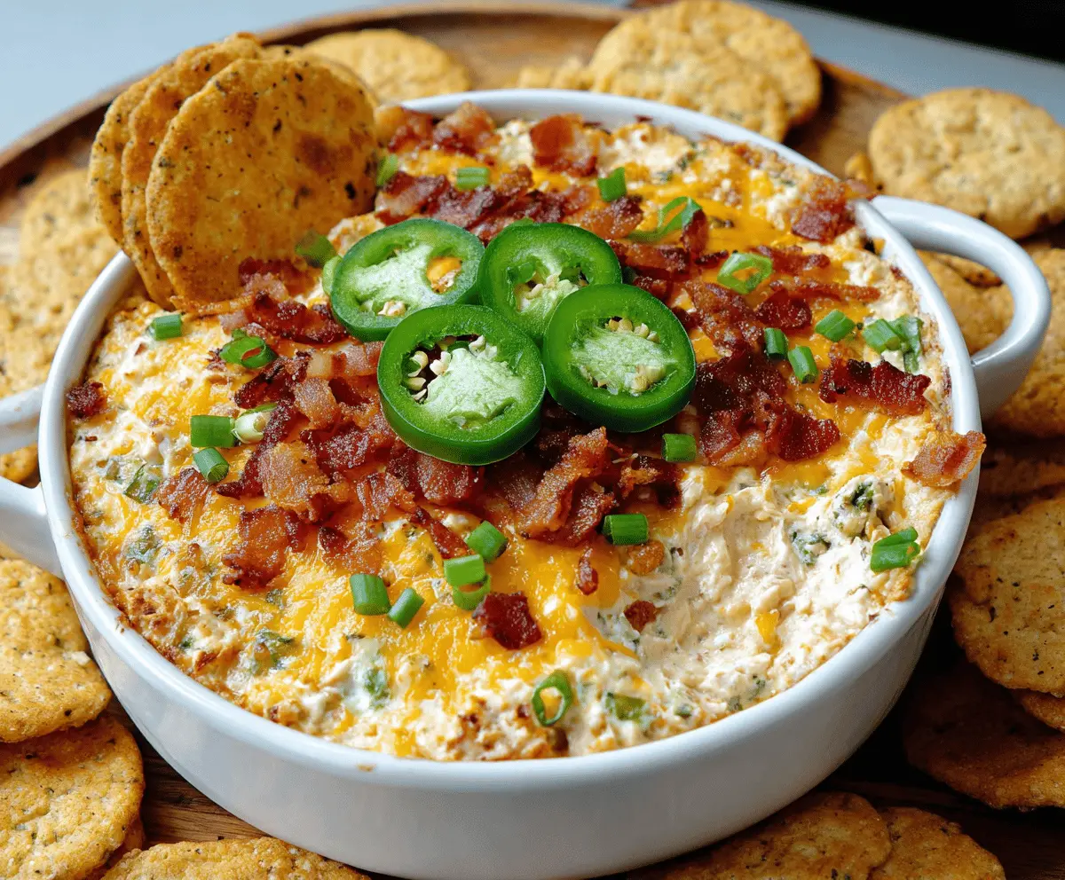 Serve your warm Jalapeño Popper Dip alongside tortilla chips or crackers. Get ready to dive in and enjoy every creamy, cheesy bite!