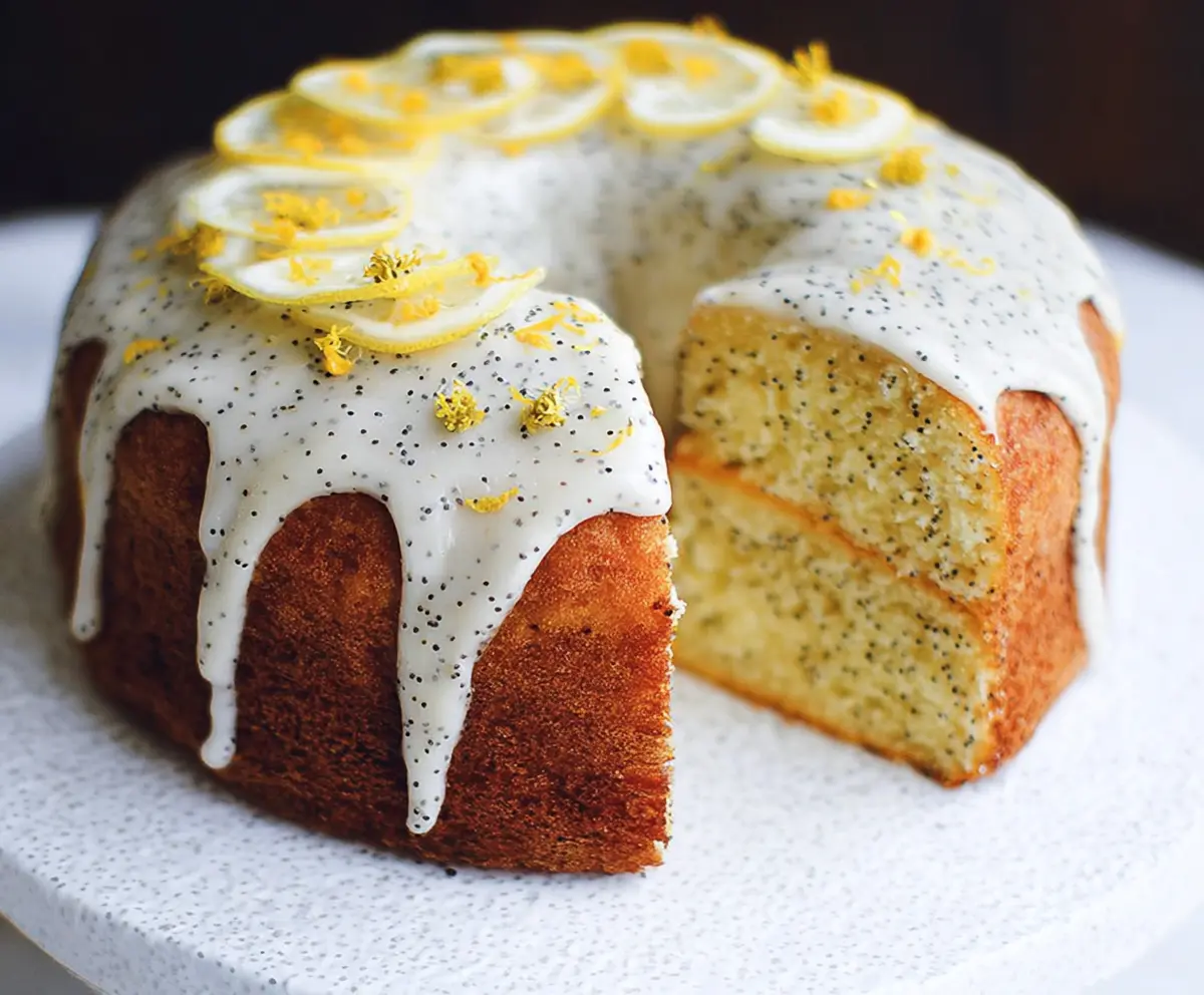 Slice the cake and serve it up! Enjoy the bright, citrusy flavor hugged by the delightful crunch of poppy seeds along with the sweet glaze. Perfect for any occasion!