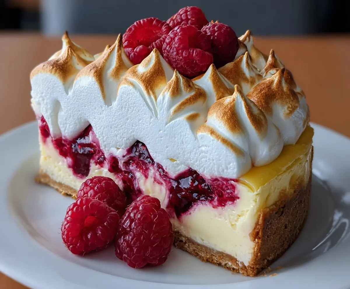 This Lemon Raspberry Meringue Cheesecake is a bright and tasty treat! With its creamy cheesecake base topped with tangy lemon and sweet raspberries, it’s a real crowd-pleaser.