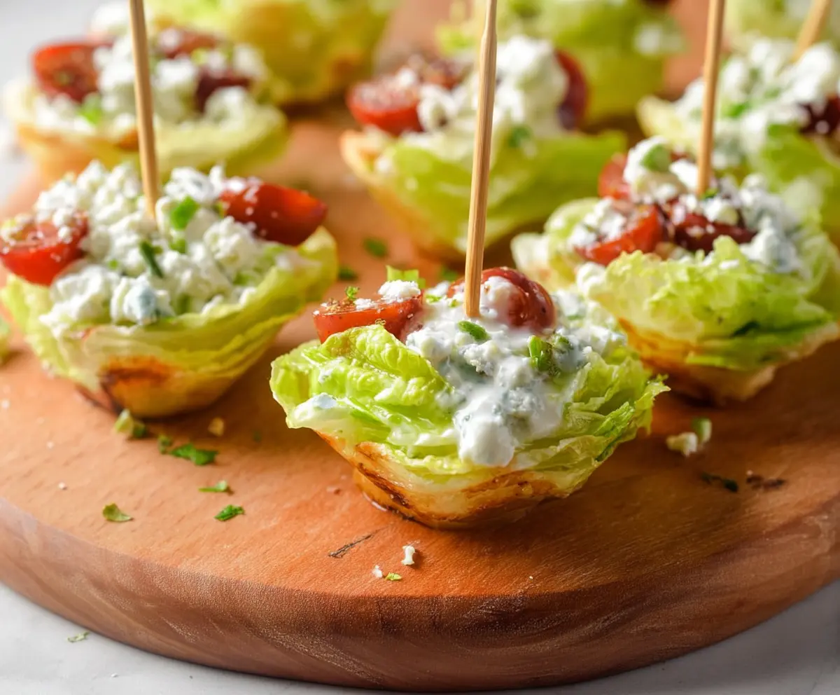 Lettuce Wedge Bites are fresh and crunchy snack-sized treats that make your taste buds smile! They are made from crisp lettuce, topped with tasty bits like cheese, bacon, and a drizzle of dressing.