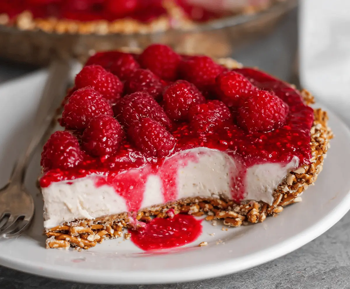 This No-Bake Raspberry Pretzel Pie is a fun mix of sweet and salty! It has a crunchy pretzel crust, creamy filling, and tangy raspberry topping. What’s not to love?