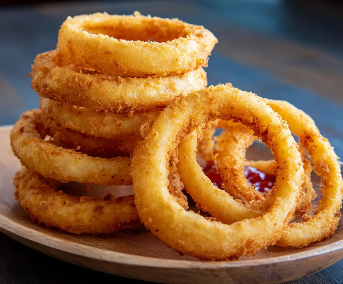 Onion rings are crispy, tasty bites that are perfect for snacking! Just slice some onions, dip them in batter, and fry until golden brown. They’re delightfully crunchy on the outside and soft inside!