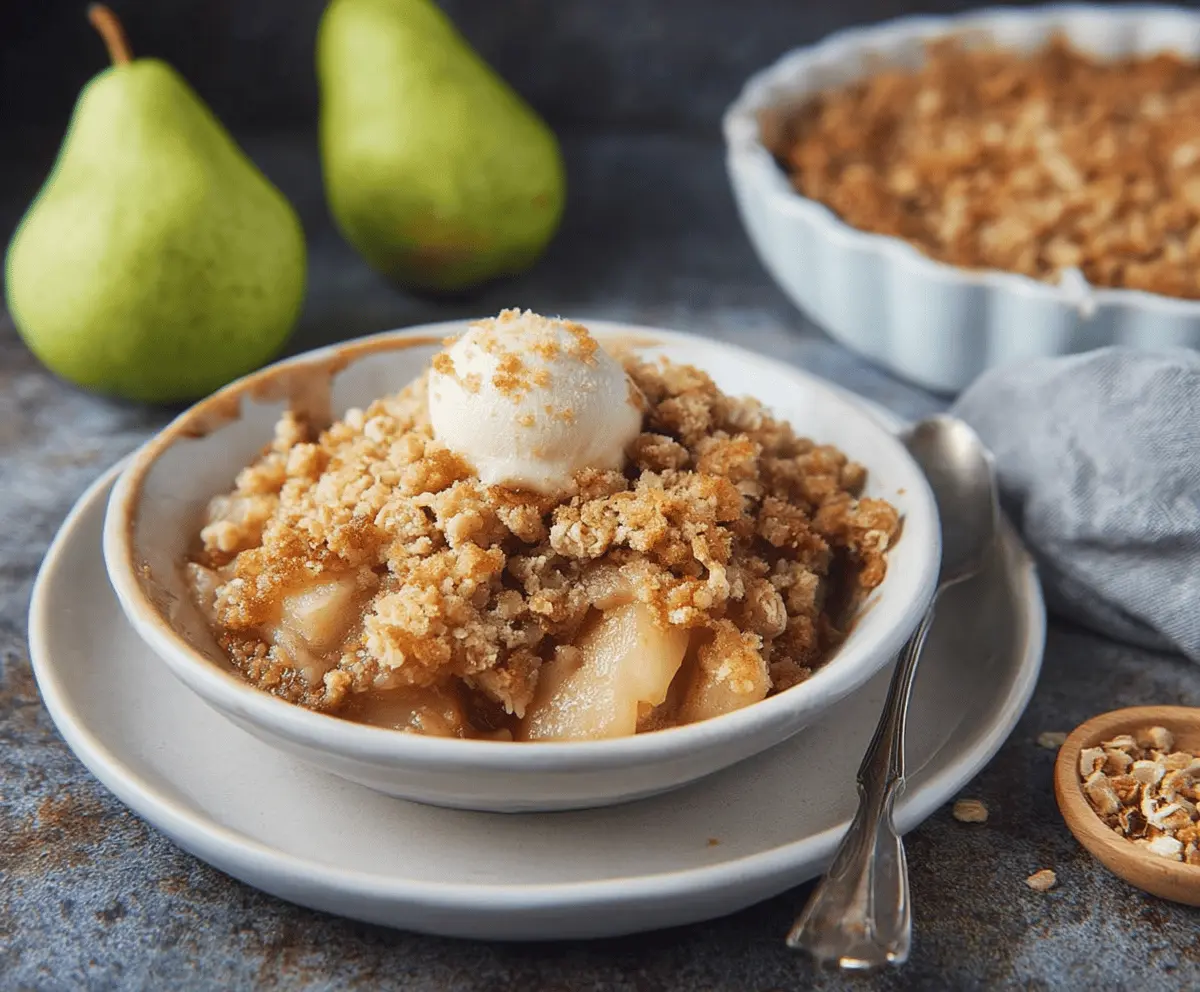 Store any leftover pear crumble in an airtight container in the fridge for up to 3 days. You can reheat it in the microwave or in the oven at 350°F (175°C) for about 10 minutes for that fresh-out-of-the-oven taste.