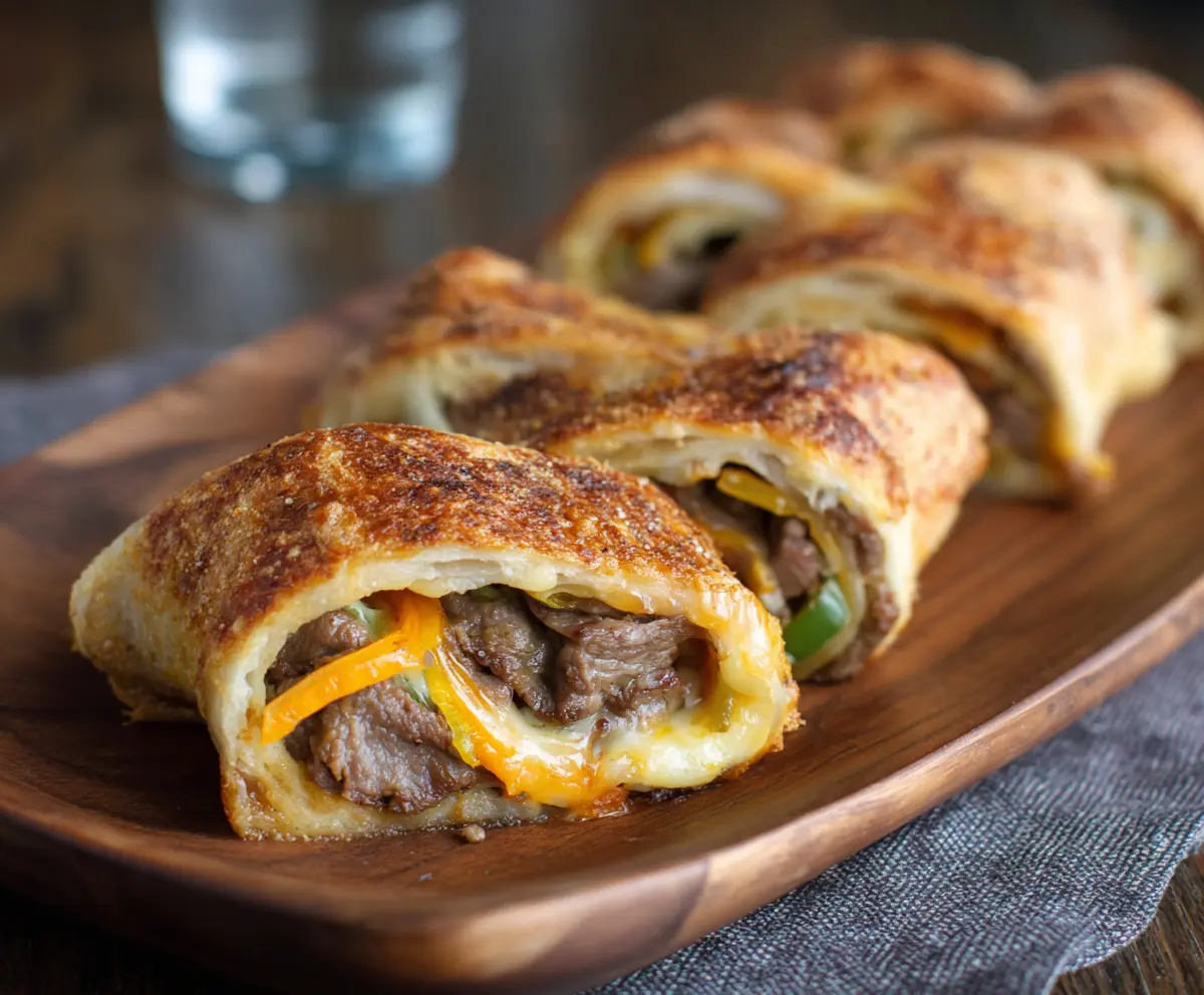 These Philly Cheesesteak Roll Ups are a tasty twist on the classic sandwich! Filled with juicy steak, melted cheese, and sautéed peppers, they are perfect for a quick meal or snack.