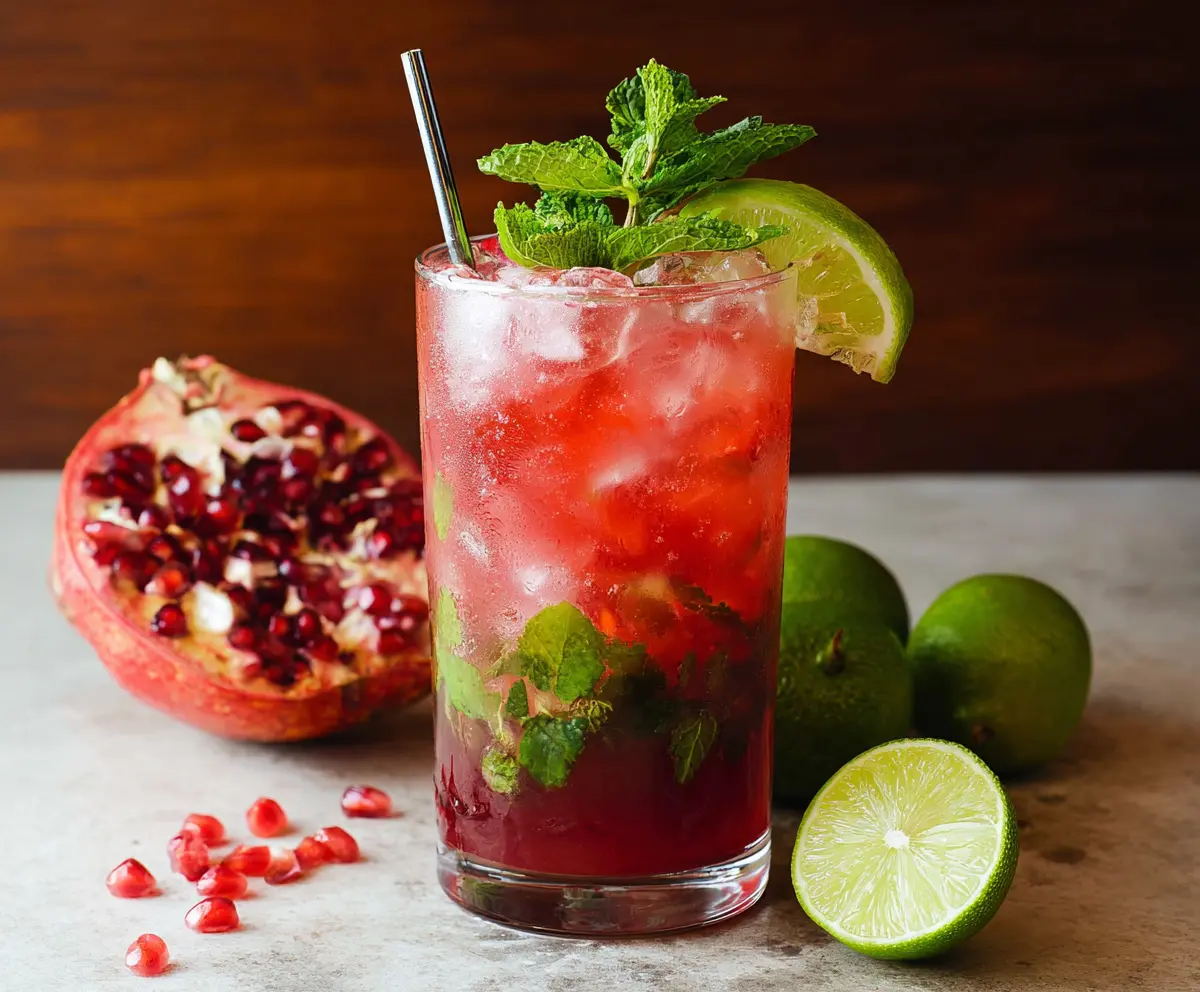 Insert a straw, take a sip, and enjoy the vibrant, refreshing flavors of your Pomegranate Mojito. Cheers to a delicious drink!