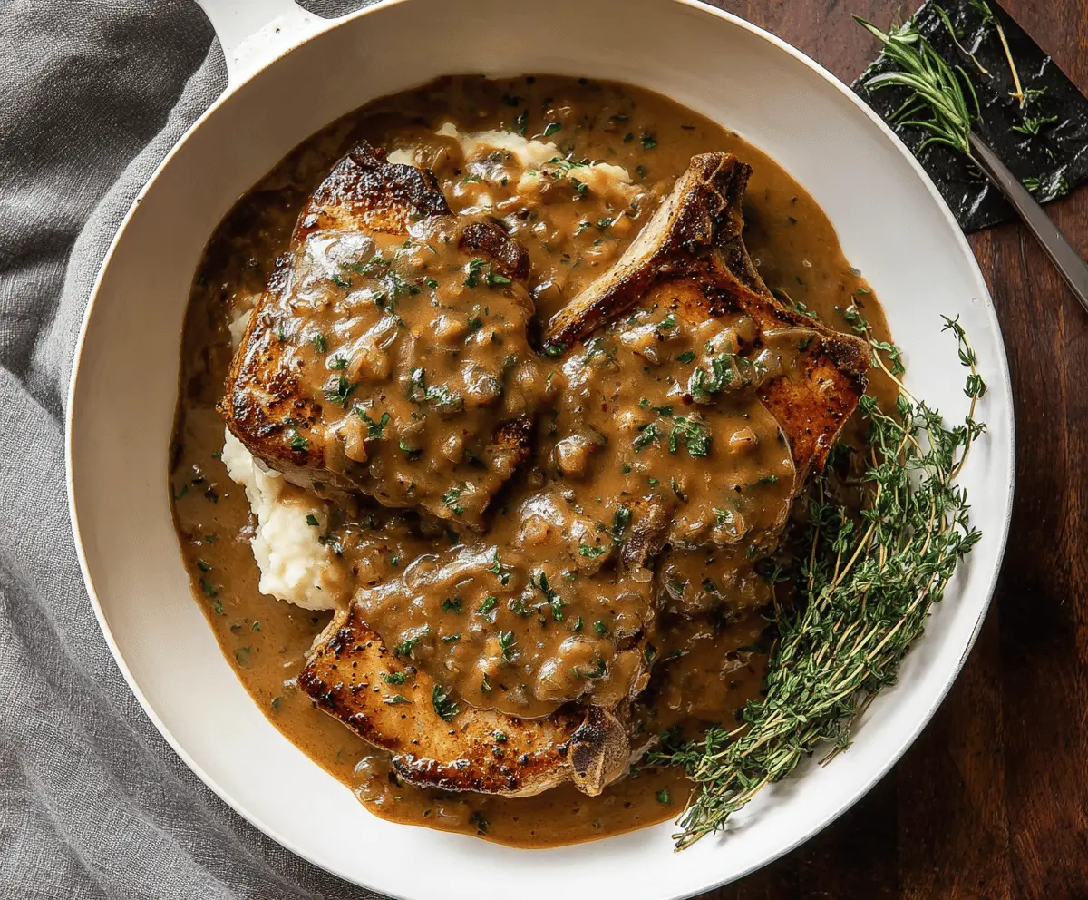 Enjoy your hearty, flavorful pork chops with rich pan gravy!