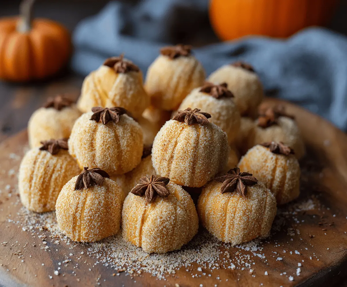 Optionally, you can dust some extra powdered sugar around the truffles before serving for an extra festive look. Enjoy these lovely pumpkin-shaped treats that are perfect for any fall celebration!