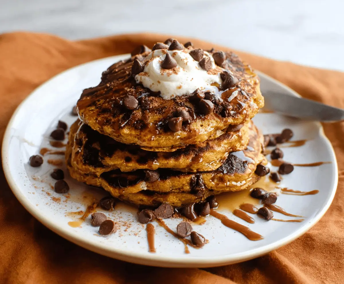 Enjoy your delicious pumpkin chocolate chip pancakes with a warm drink and great company! Happy eating! 🥞🎉