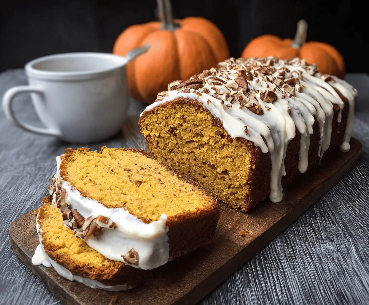 Delicious Pumpkin Pound Cake with Cream Cheese Glaze and Pecans