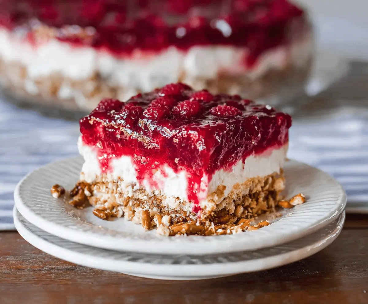 Raspberry Pretzel Salad Cake