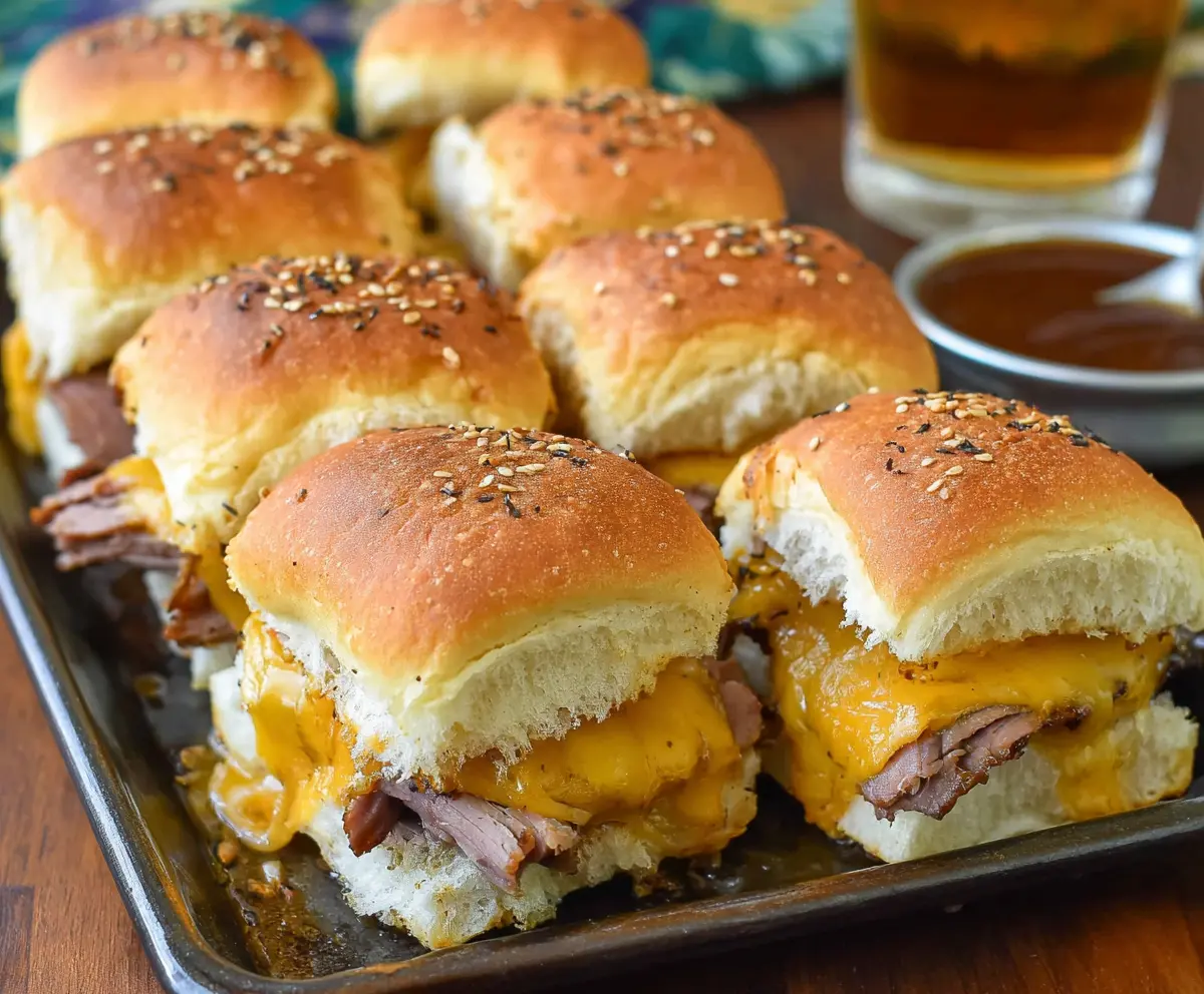 These Roast Beef and Cheddar Sliders are tiny sandwiches packed with big flavor! With tender beef, gooey cheddar, and a buttery topping, they’re perfect for game day or any gathering.