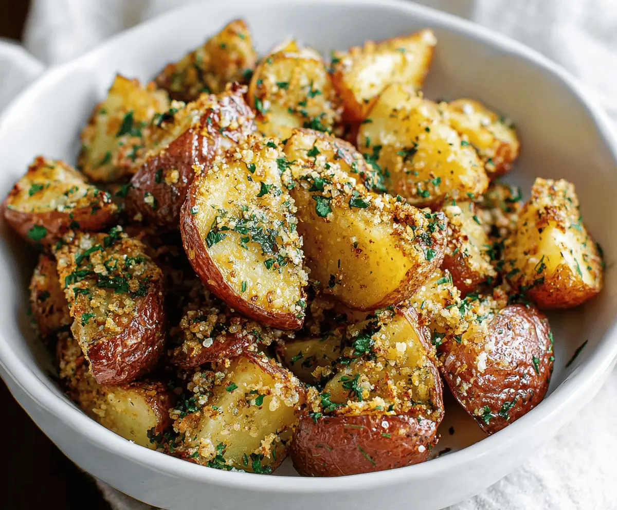 Enjoy the crispy, cheesy, and garlicky goodness of roasted potatoes!