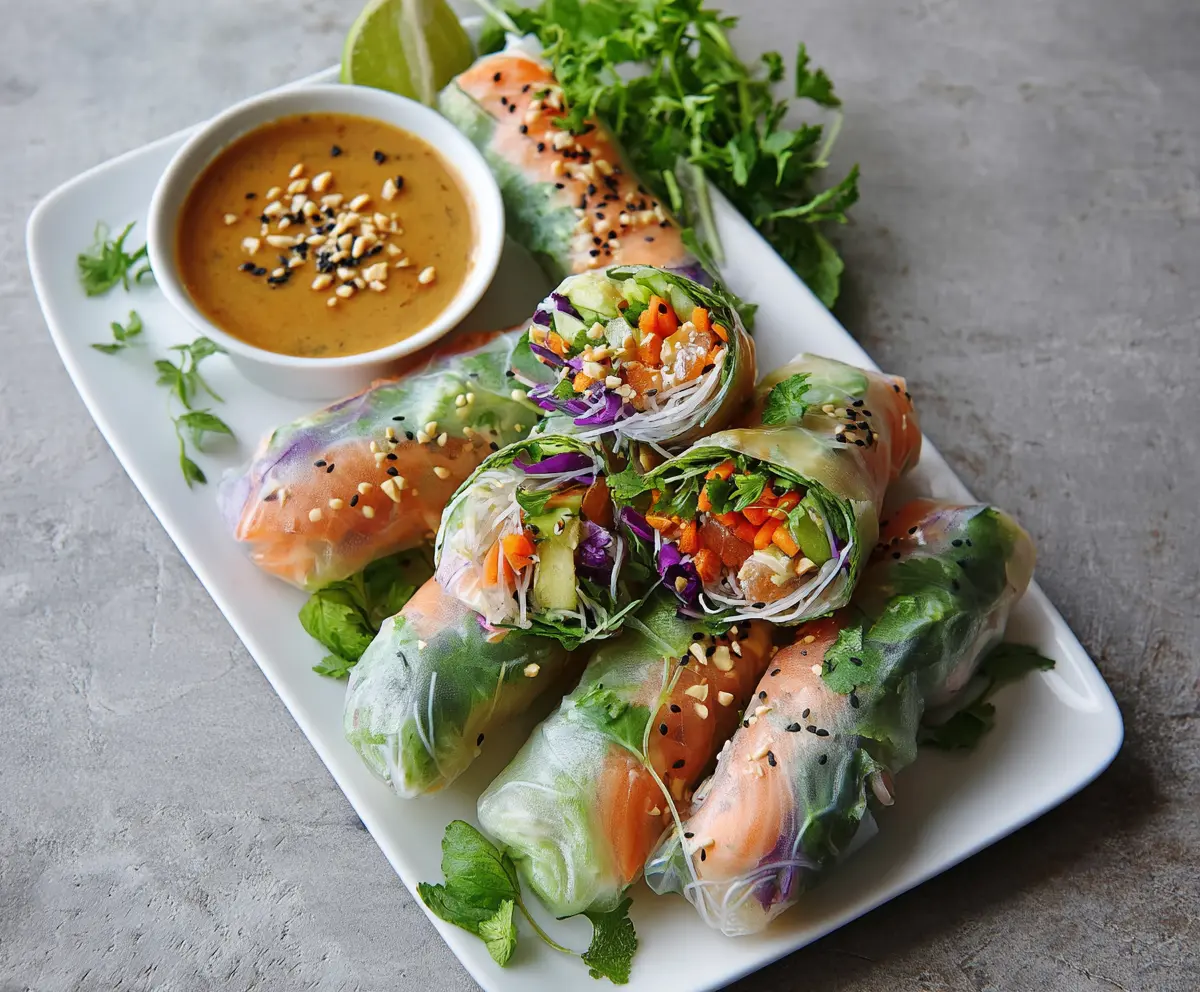Enjoy these refreshing and vibrant salmon spring rolls paired with a rich and tangy peanut sauce! They’re a delightful appetizer or light meal that celebrates fresh flavors and textures.